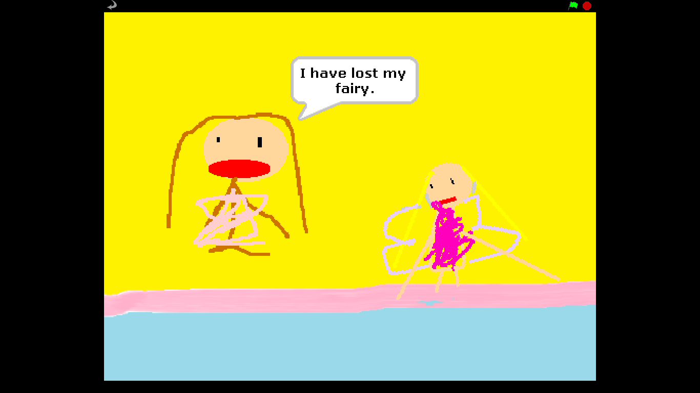 - Writing a very short story in three scenes (Backgrounds) , and creating two characters (Sprites), with simple dialogue